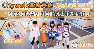 Citywalk荃新天地呈獻「KIDS DREAM BIG!夢想職業體驗館」由2023年7月15日至8月20日,荃新天地夏日呈獻「KIDS DREAM BIG!夢想職業體驗館」主題活動,讓小朋友發...